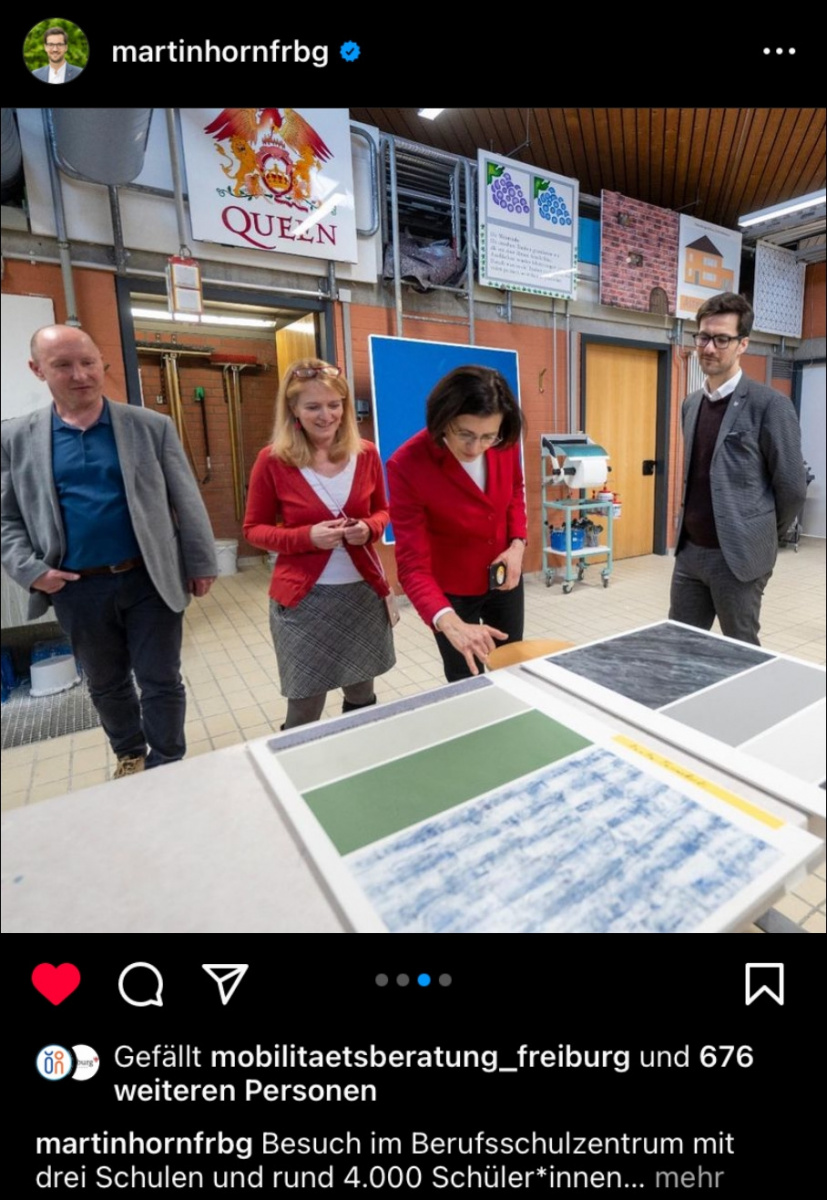 Am 16.03.23 besuchten Herr OB Martin Horn und seine Kollegin Frau BM Christine Buchheit das Berufsschulzentrum in Freiburg. Dabei entstanden die folgenden Fotos für den Instagram-Auftritt von Herrn Horn: