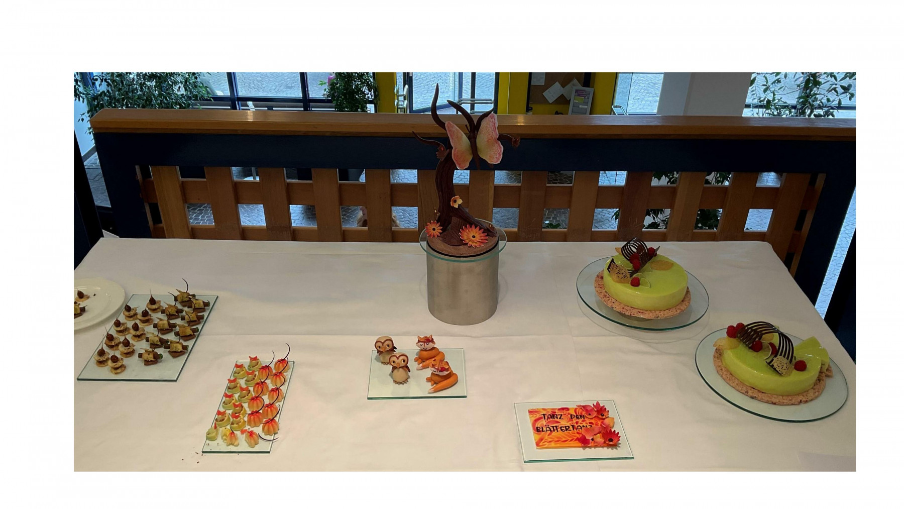 Am Dienstag begann der Wettbewerb um 8 Uhr. Die stellvertretende Schulleiterin sprach ein Grußwort und wünschte allen Teilnehmer*innen viel Erfolg. Es wurden individuelle Kleintorten, fantasievoll dekorierte Petit Fours, unterschiedliche Pralinen sowie ein Schaustück zu einem selbstgewählten Thema hergestellt.